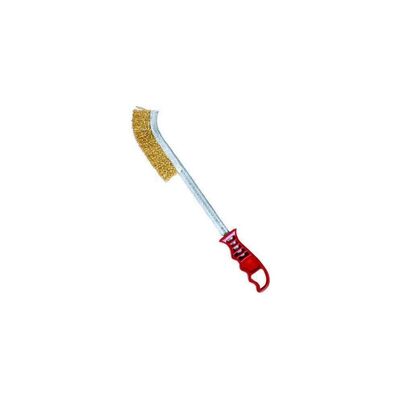 Συρματόβουρτσα χειρός μακρυά με πλαστική κόκκινη λαβή και κίτρινη τρίχα.
