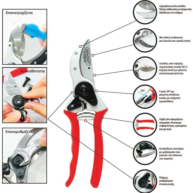 - Σφυρήλατη κάτω λεπίδα. Έξτρα ανθεκτική με εξαιρετική διείσδυση στο κόψιμο.