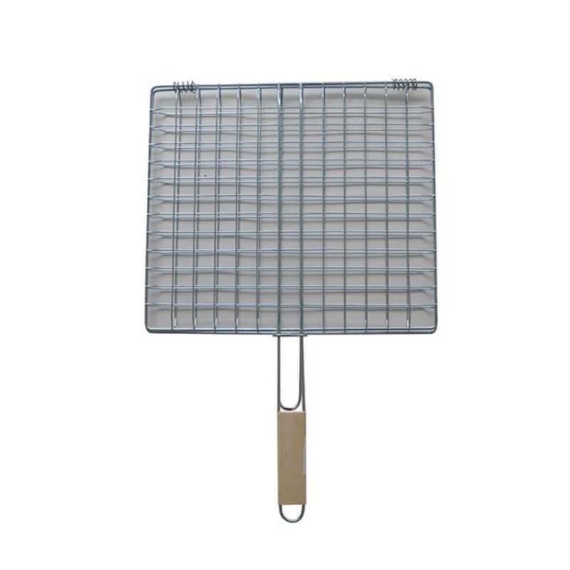 Σχάρα καρε Β με ξύλινη λαβή για εύκολο γύρισμα, σταθερό κράτημα και προστασία από τις υψηλές θερμοκρασίες.