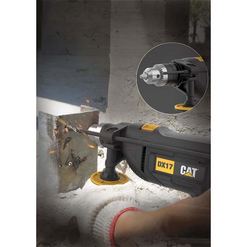 Το δράπανο κρουστικό CAT DX17 είναι ένα αξιόπιστο εργαλείο με ισχύ 750W. Διαθέτει δεξιόστροφη/αριστερόστροφη κίνηση για ευκολία στη χρήση. Ο μεταλλικός μετρητής βάθους επιτρέπει ακριβή ρύθμιση του βάθους διάτρησης. Η ρυθμιζόμενη ταχύτητα επιτρέπει τον έλεγχο της ταχύτητας ανάλογα με την εργασία. Ο διακόπτης κλειδώματος εξασφαλίζει την ασφάλεια και την ευκολία χρήσης. Η λαβή με επικάλυψη από λάστιχο υψηλής ποιότητας προσφέρει άνεση και σταθερό κράτημα. Επιπλέον, η σύνδεση καλωδίου σφαιρικής άρθρωσης προσφέρει πλήρη προστασία του καλωδίου τροφοδοσίας.