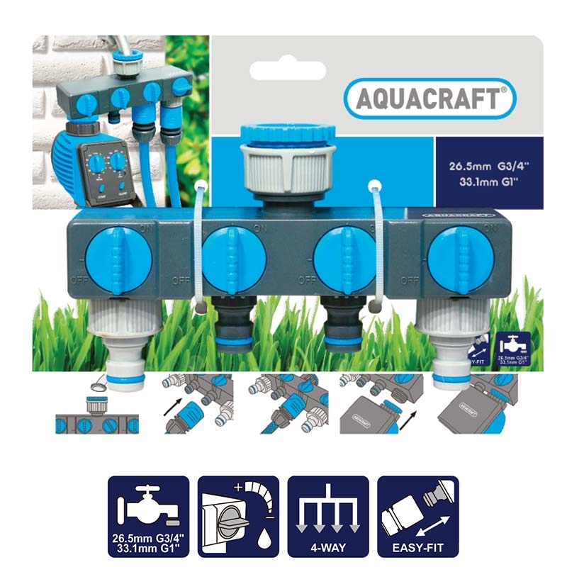 - Τέσσερα ξεχωριστά ρυθμιζόμενες συνδέσεις για σύνδεση με λάστιχο κήπου ή προγραμματιστές ποτίσματος.