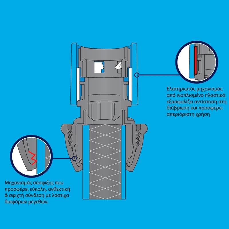 - Για την εφαρμογή του λάστιχου στο ρακόρ βρύσης.