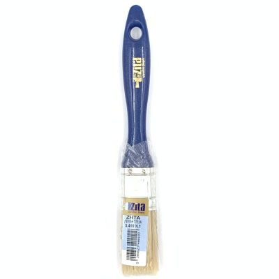 Πινέλο διπλό με πλαστική λαβή ανθεκτική στους διαλύτες και λευκή φυσική τρίχα πολύ καλής ποιότητας. Κόλλα εποξική για τη συγκόλληση θυσσάνου-στροφίου.