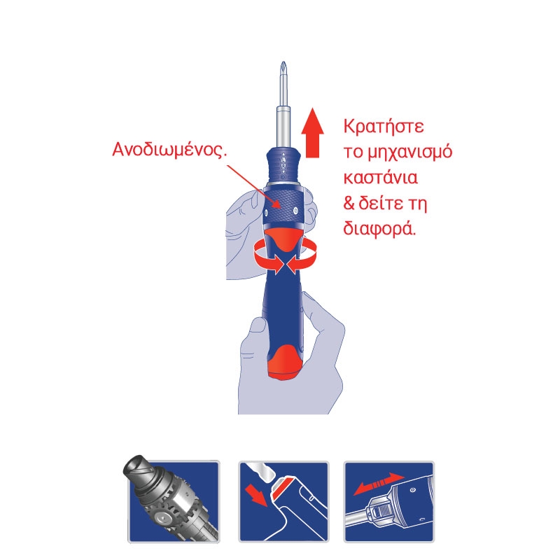 - Εργονομική, αντιολισθητική λαβή με μαλακή επένδυση για καλύτερο κράτημα.