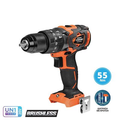 Δραπανοκατσάβιδο κρουστικό επαναφορτιζόμενο U72020-00B 55Nm, ιδανικό για διάτρηση σε ξύλο, μέταλλο ή παρόμοια υλικά, και περιστασιακά για διάτρηση με κρούση σε τοιχοποιία ή δομικά υλικά. Το LED εργασίας διαθέτει αισθητήρα φωτός για εξοικονόμηση μπαταρίας σε συνθήκες ημέρας.
